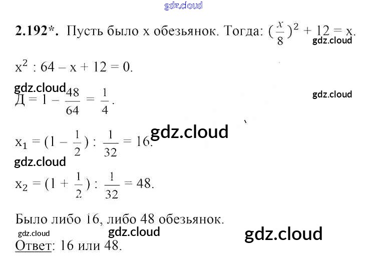 Ответ на задание 2.192 Учебник Алгебра за 8 (восьмой) класс Арефьева, Пирютко 2018 ФГОС онлайн и без номера телефона.