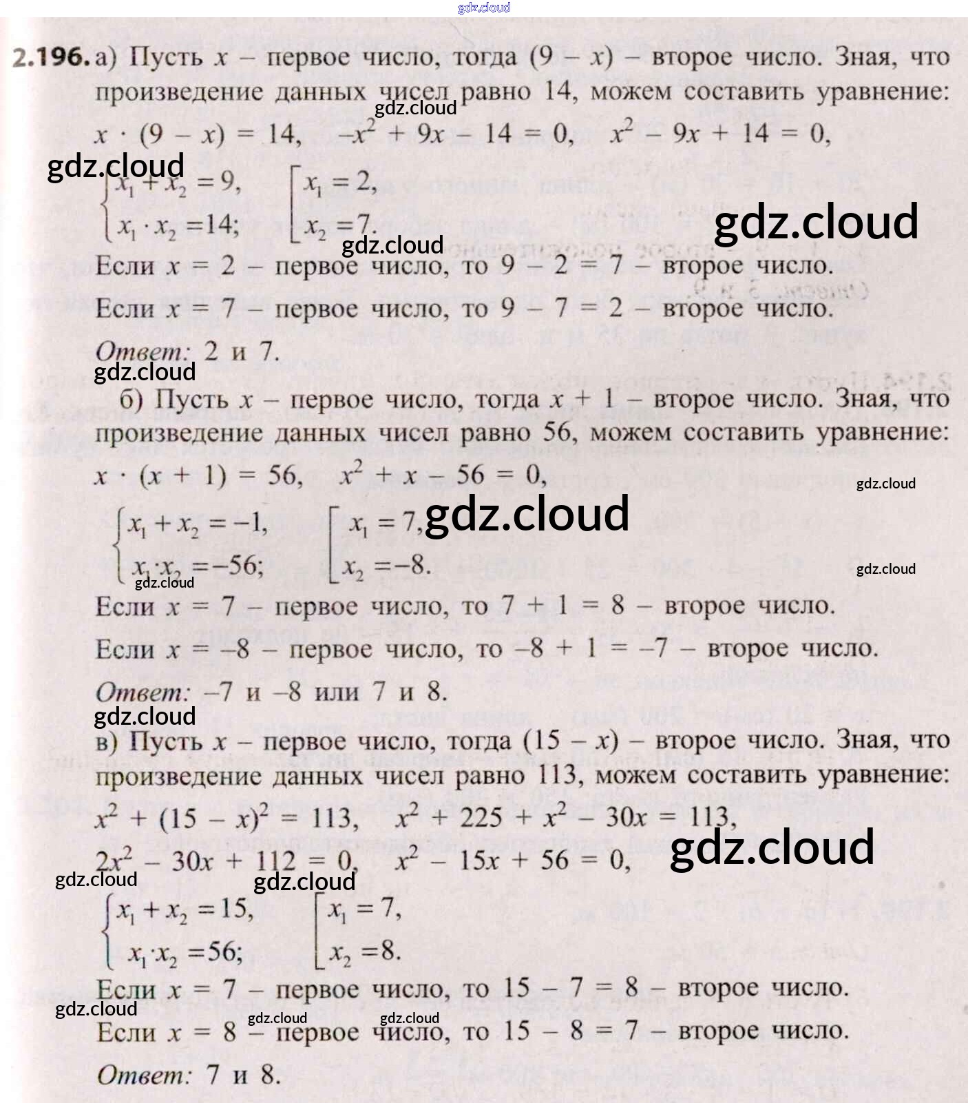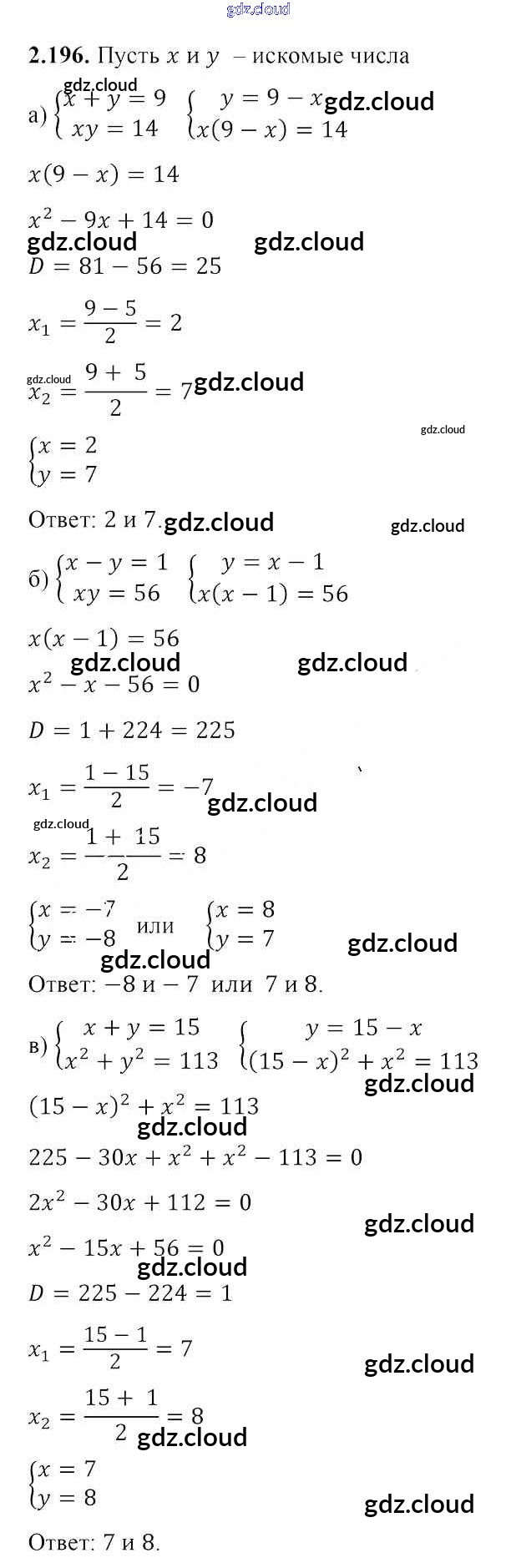 Ответ на задание 2.196 Учебник Алгебра за 8 (восьмой) класс Арефьева, Пирютко 2018