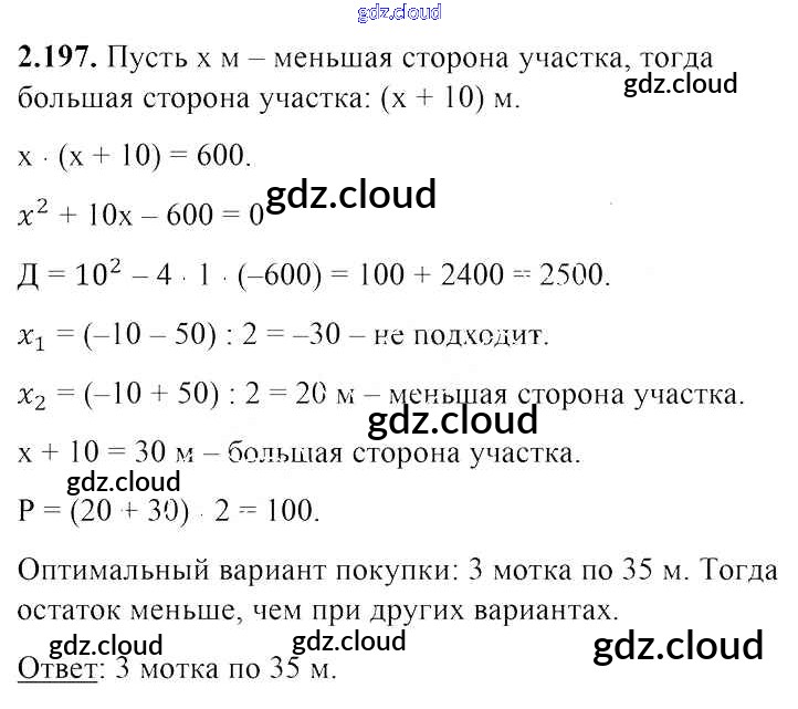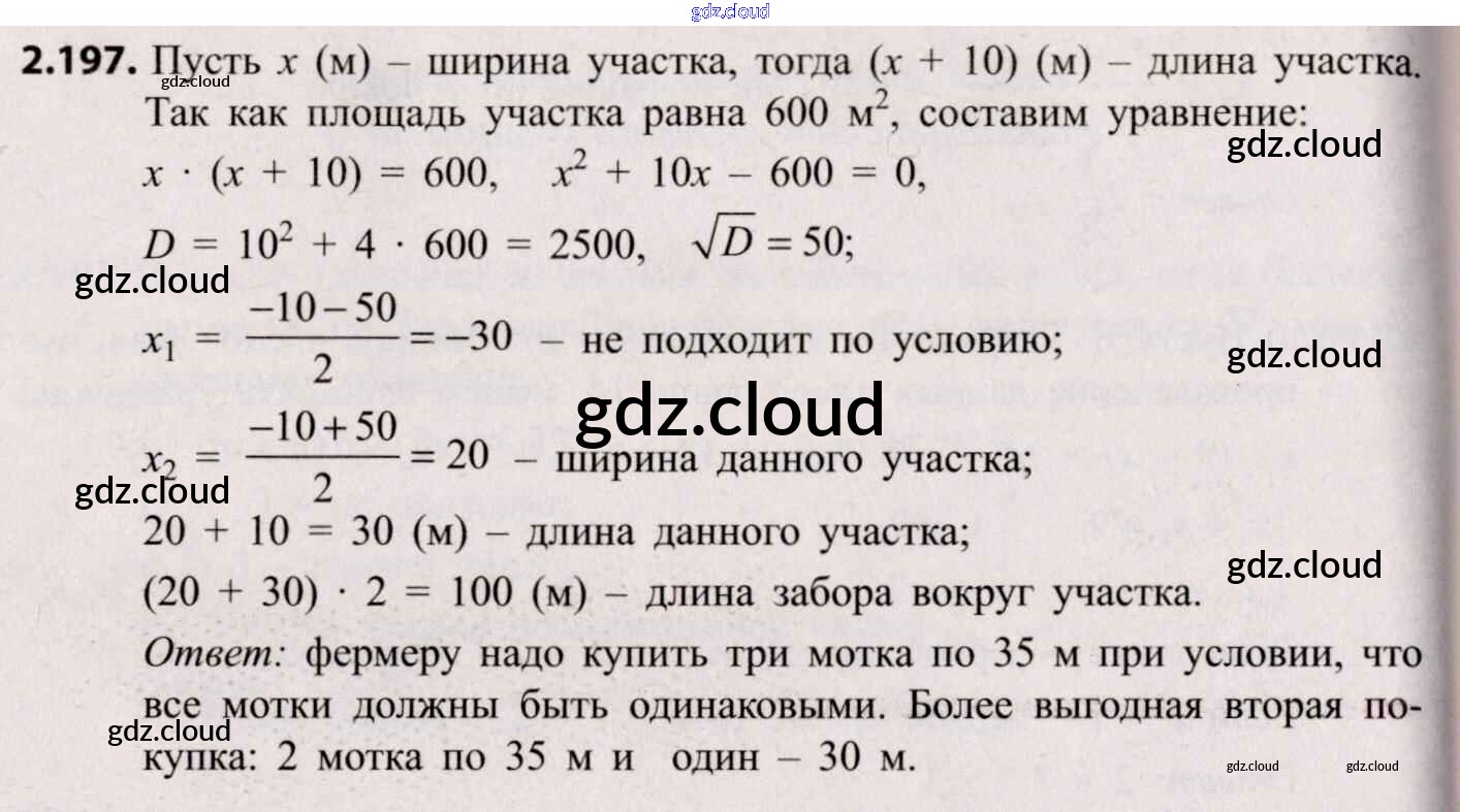 Ответ на задание 2.197 Учебник Алгебра за 8 (восьмой) класс Арефьева, Пирютко 2018