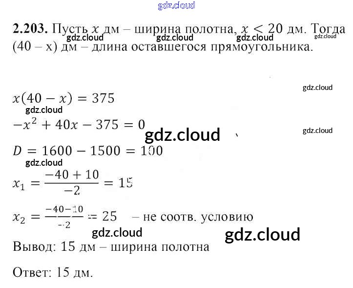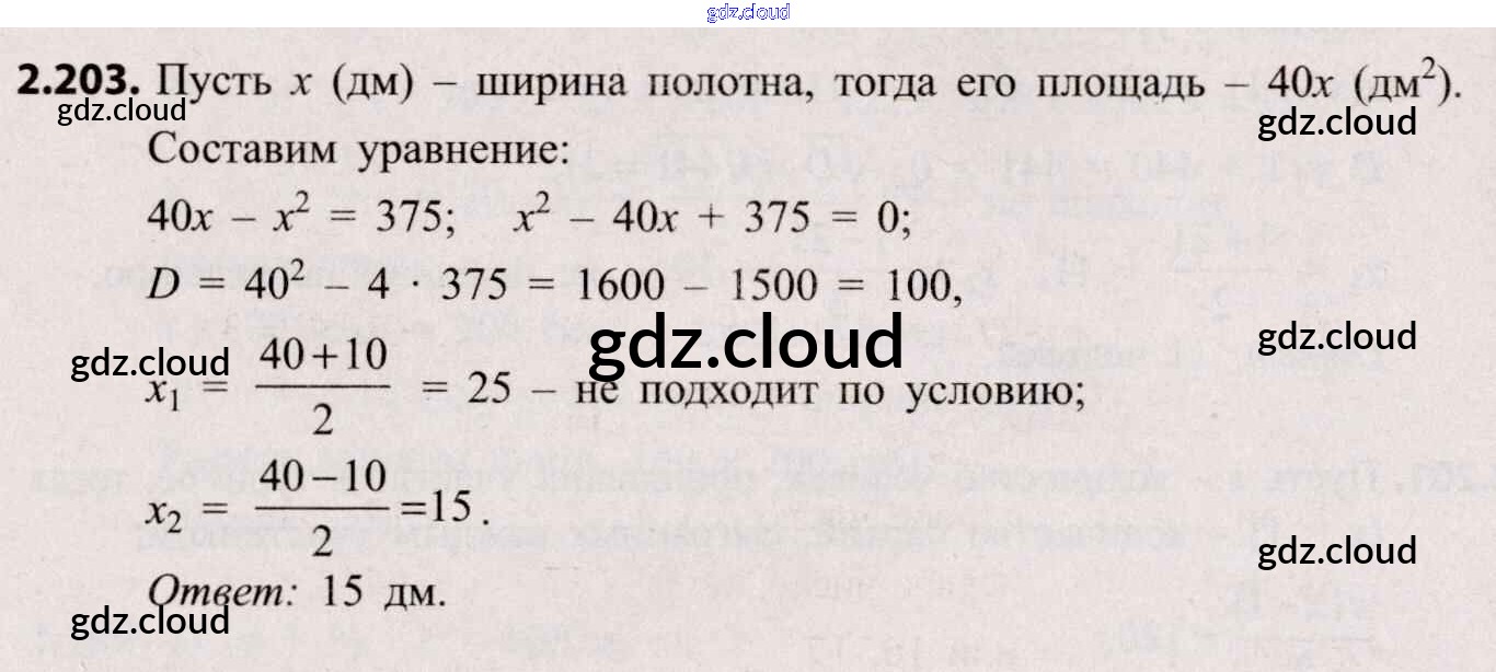Ответ на задание 2.203 Учебник Алгебра за 8 (восьмой) класс Арефьева, Пирютко 2018