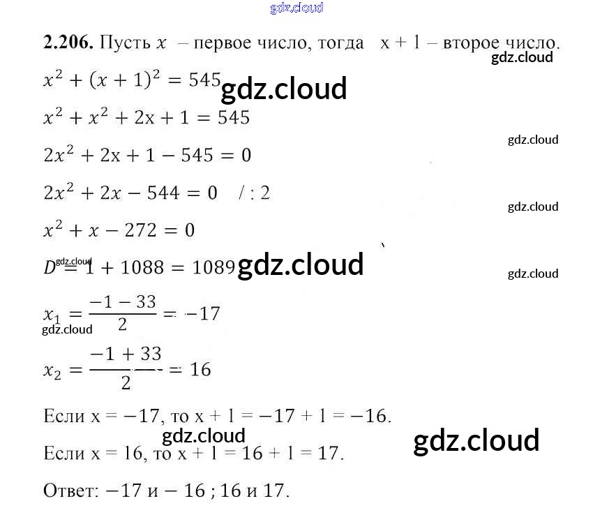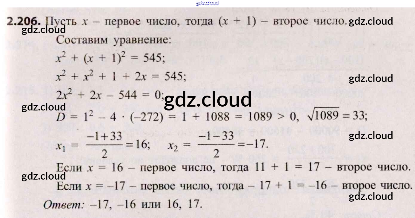 Ответ на задание 2.206 Учебник Алгебра за 8 (восьмой) класс Арефьева, Пирютко 2018