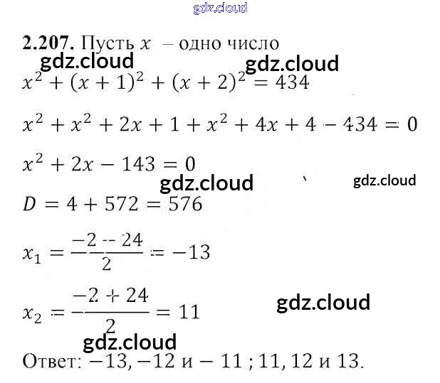 Ответ на задание 2.207 Учебник Алгебра за 8 (восьмой) класс Арефьева, Пирютко 2018