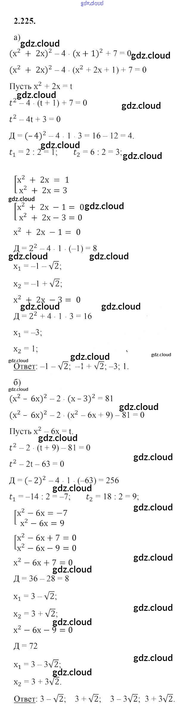 Ответ на задание 2.225 Учебник Алгебра за 8 (восьмой) класс Арефьева, Пирютко 2018 ФГОС онлайн и без номера телефона.
