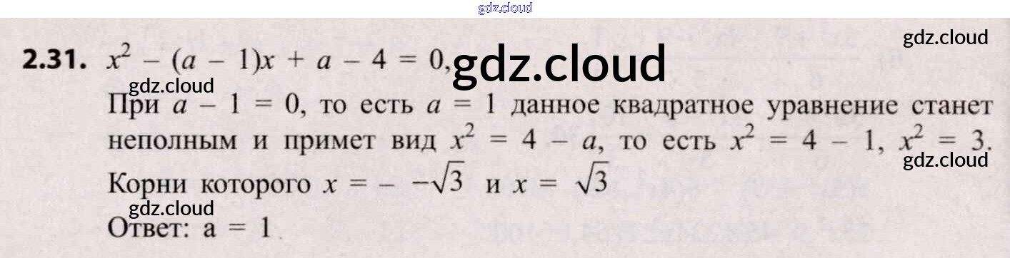 Ответ на задание 2.31 Учебник Алгебра за 8 (восьмой) класс Арефьева, Пирютко 2018