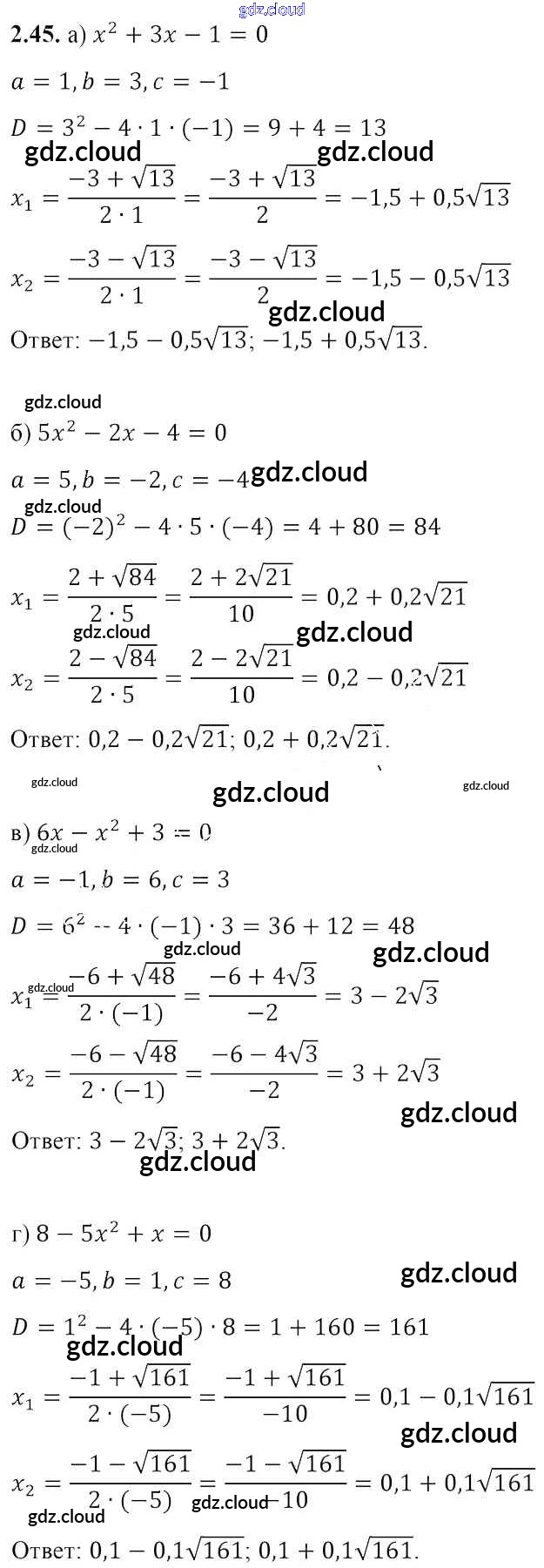 Ответ на задание 2.45 Учебник Алгебра за 8 (восьмой) класс Арефьева, Пирютко 2018 ФГОС онлайн и без номера телефона.