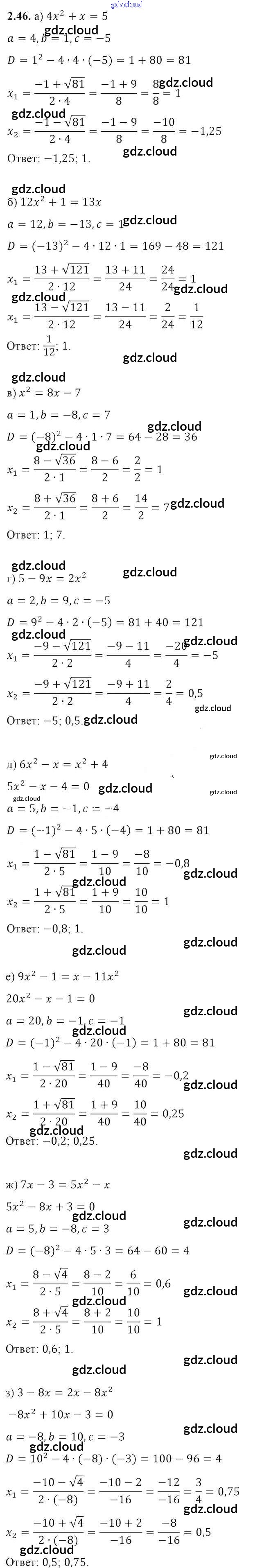Ответ на задание 2.46 Учебник Алгебра за 8 (восьмой) класс Арефьева, Пирютко 2018 ФГОС онлайн и без номера телефона.