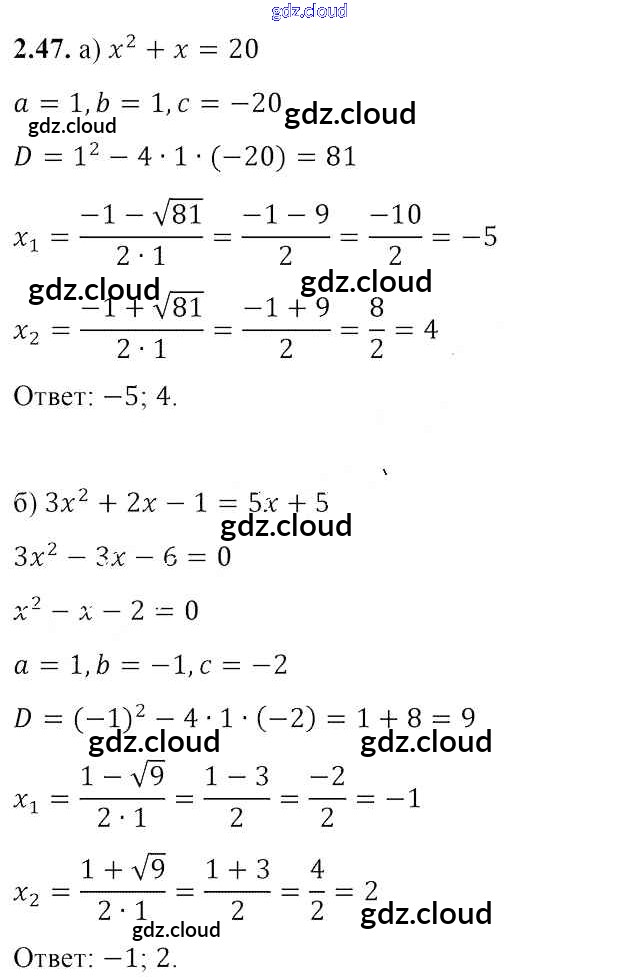 Ответ на задание 2.47 Учебник Алгебра за 8 (восьмой) класс Арефьева, Пирютко 2018 ФГОС онлайн и без номера телефона.