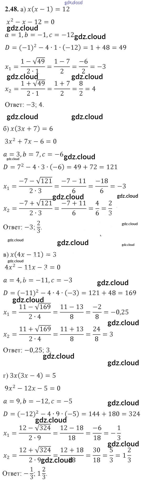Ответ на задание 2.48 Учебник Алгебра за 8 (восьмой) класс Арефьева, Пирютко 2018 ФГОС онлайн и без номера телефона.