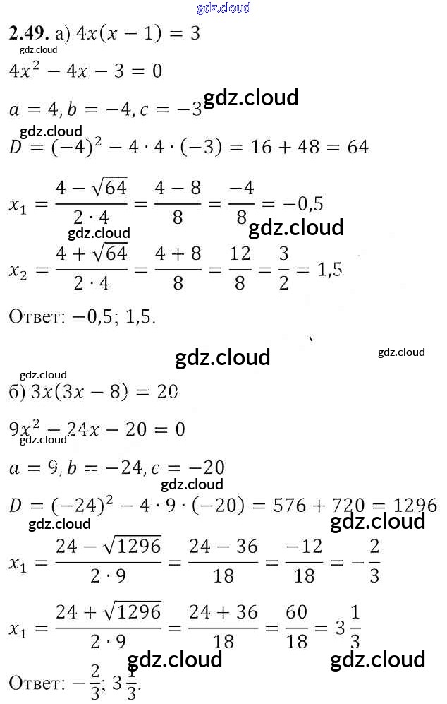 Ответ на задание 2.49 Учебник Алгебра за 8 (восьмой) класс Арефьева, Пирютко 2018 ФГОС онлайн и без номера телефона.