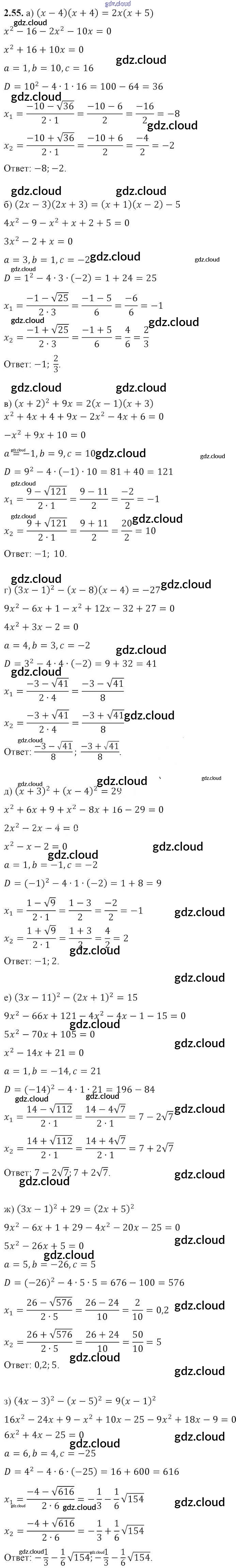Ответ на задание 2.55 Учебник Алгебра за 8 (восьмой) класс Арефьева, Пирютко 2018 ФГОС онлайн и без номера телефона.