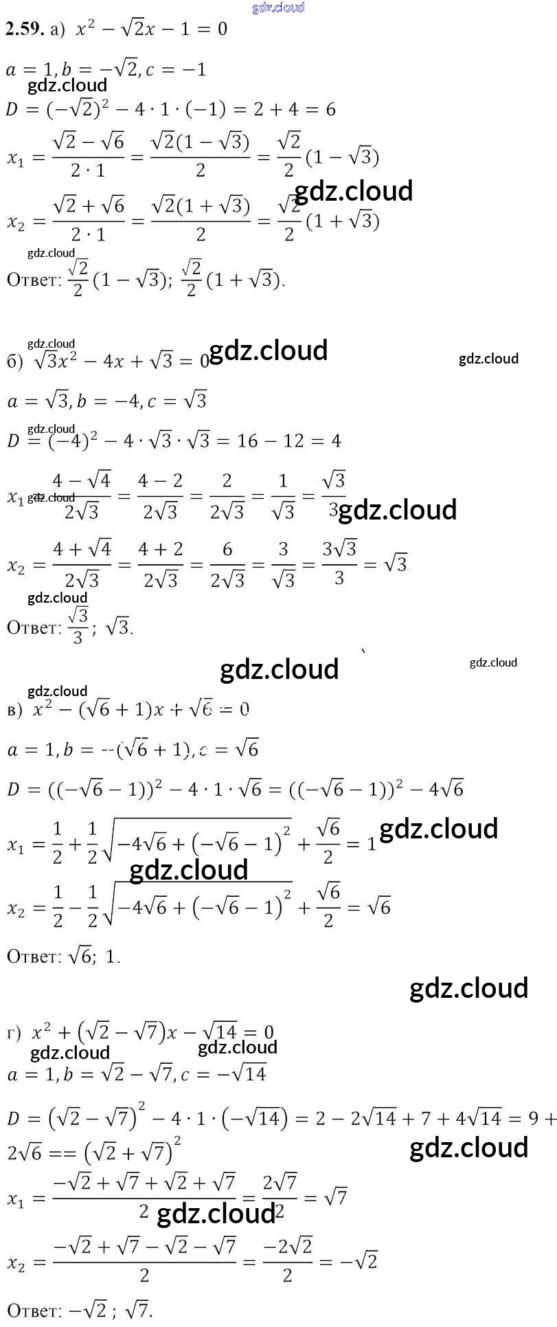 Ответ на задание 2.59 Учебник Алгебра за 8 (восьмой) класс Арефьева, Пирютко 2018 ФГОС онлайн и без номера телефона.
