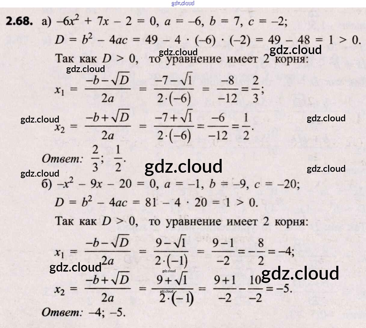 Ответ на задание 2.68 Учебник Алгебра за 8 (восьмой) класс Арефьева, Пирютко 2018