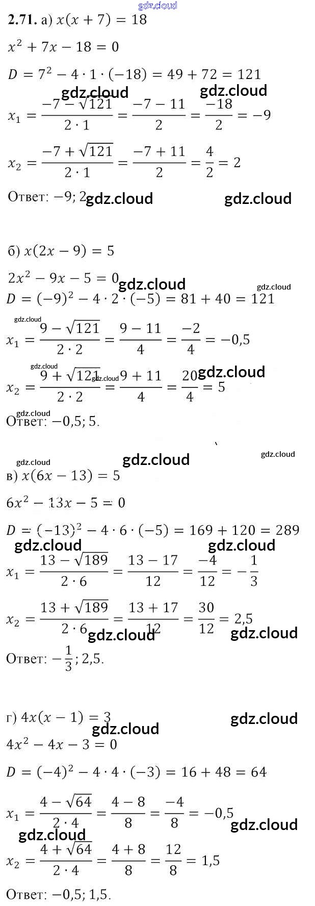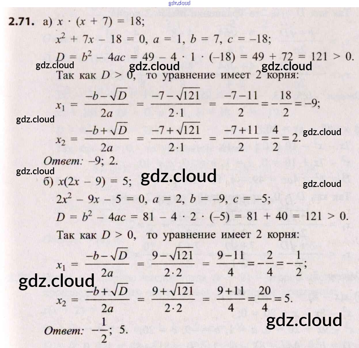 Ответ на задание 2.71 Учебник Алгебра за 8 (восьмой) класс Арефьева, Пирютко 2018