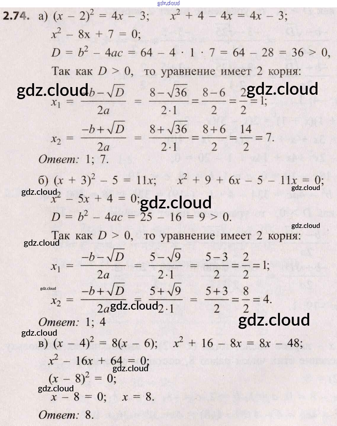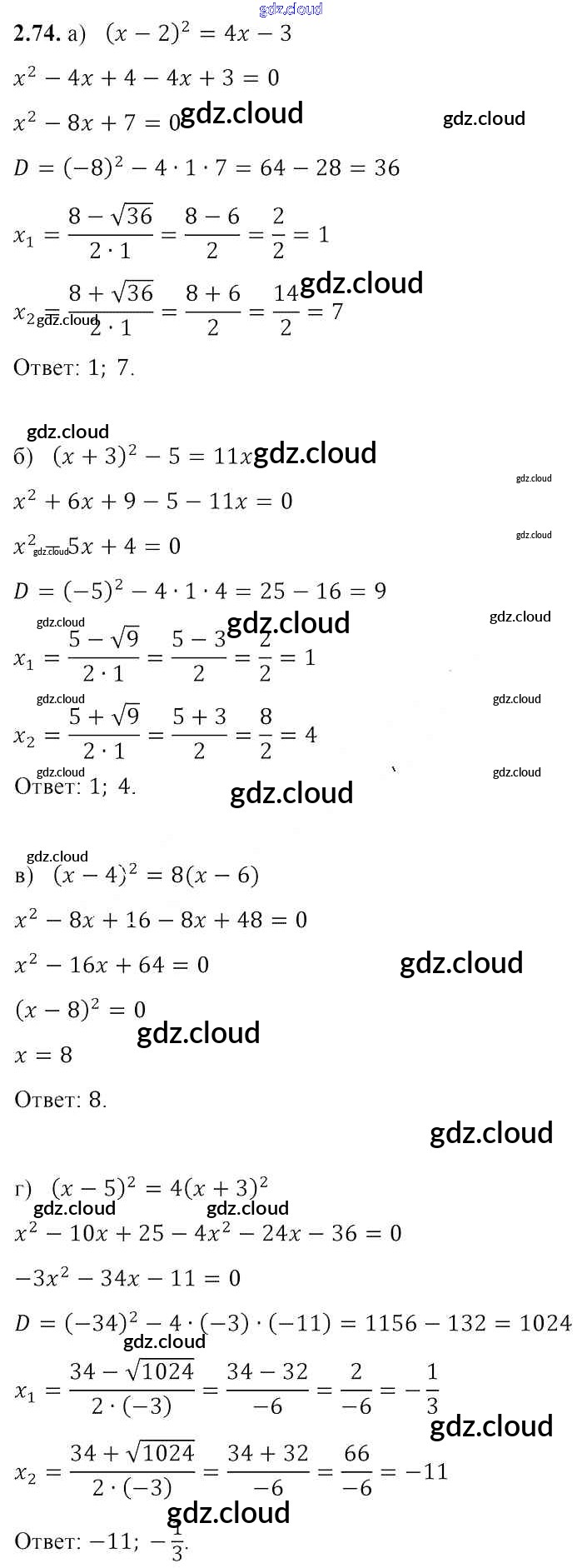 Ответ на задание 2.74 Учебник Алгебра за 8 (восьмой) класс Арефьева, Пирютко 2018