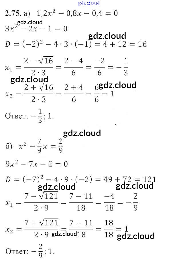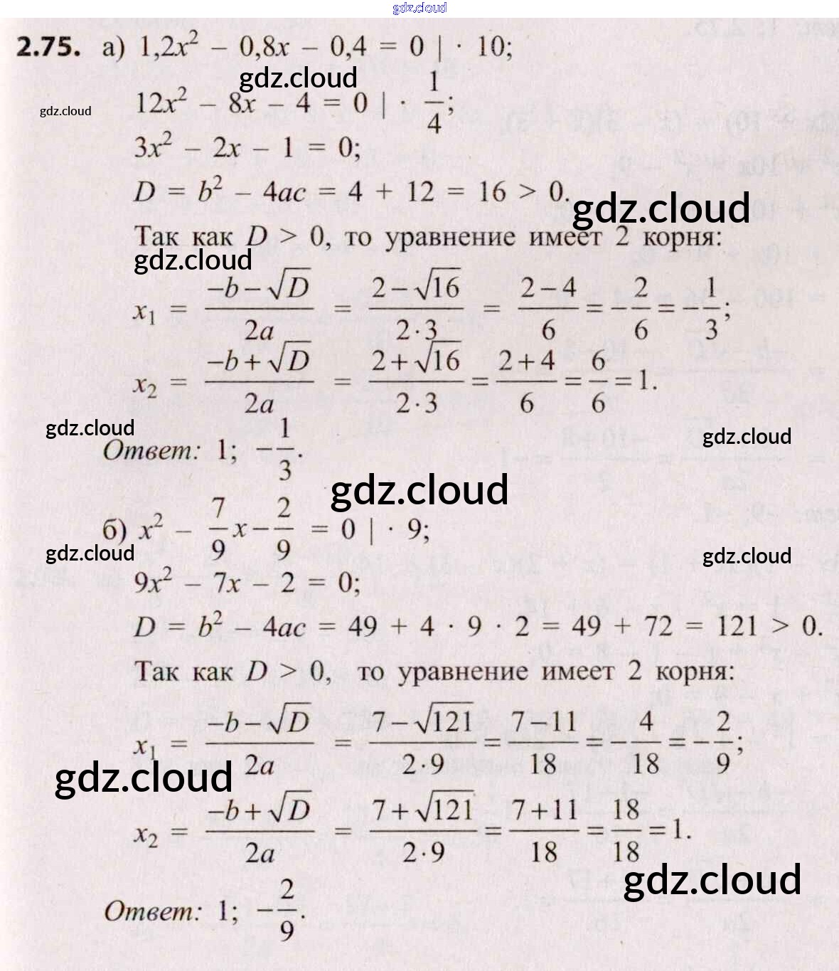 Ответ на задание 2.75 Учебник Алгебра за 8 (восьмой) класс Арефьева, Пирютко 2018