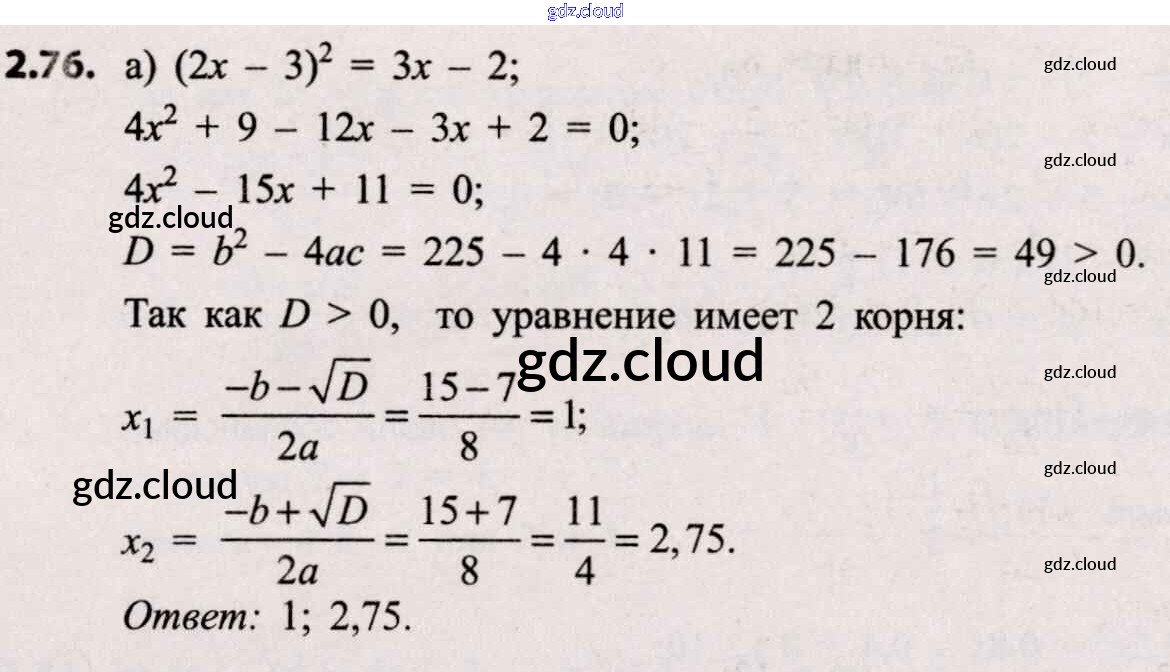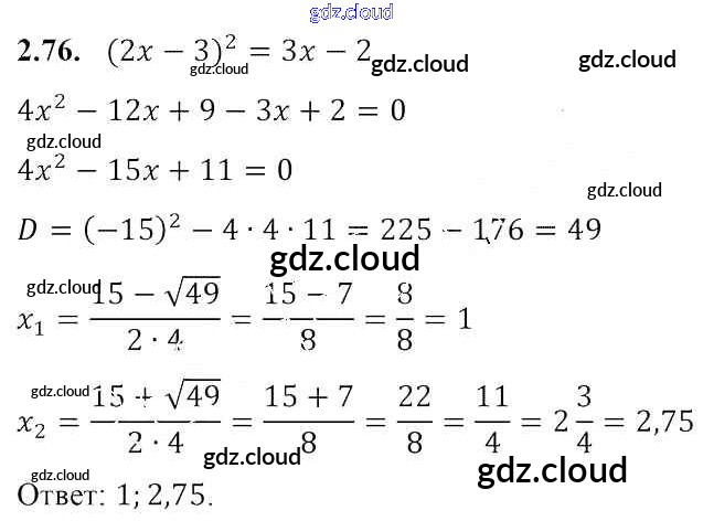 Ответ на задание 2.76 Учебник Алгебра за 8 (восьмой) класс Арефьева, Пирютко 2018