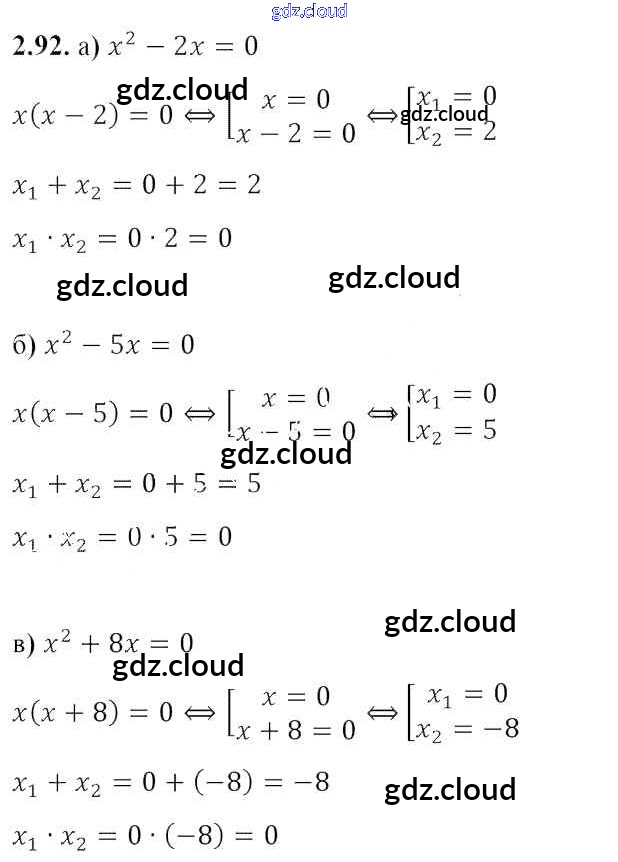 Ответ на задание 2.92 Учебник Алгебра за 8 (восьмой) класс Арефьева, Пирютко 2018 ФГОС онлайн и без номера телефона.