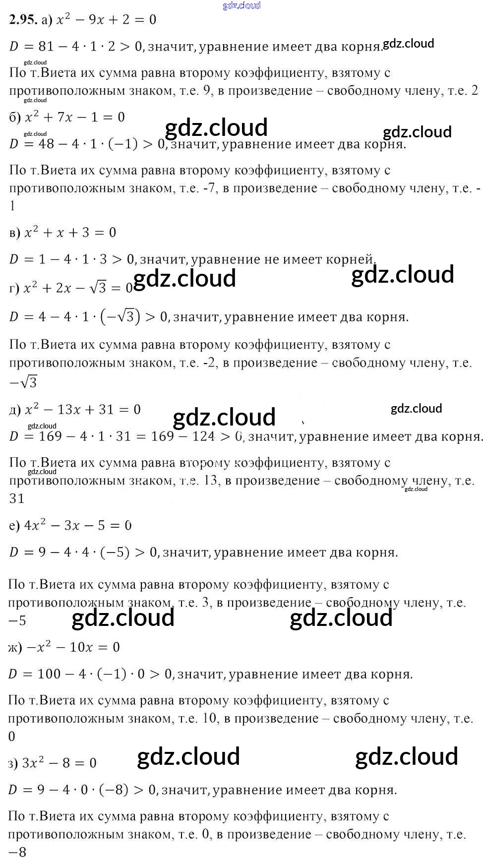 Ответ на задание 2.95 Учебник Алгебра за 8 (восьмой) класс Арефьева, Пирютко 2018 ФГОС онлайн и без номера телефона.