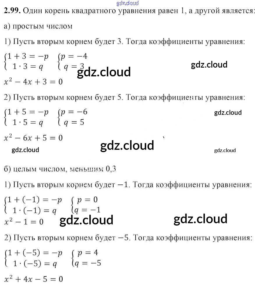 Ответ на задание 2.99 Учебник Алгебра за 8 (восьмой) класс Арефьева, Пирютко 2018 ФГОС онлайн и без номера телефона.