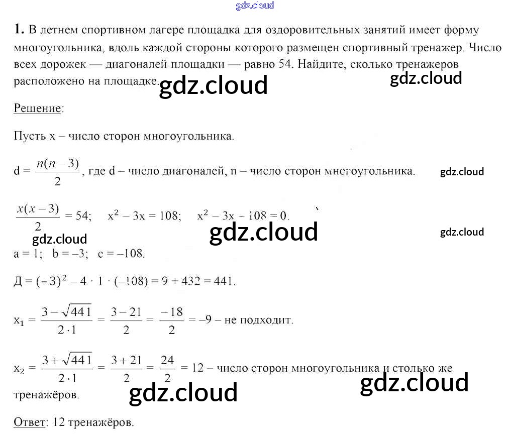 Ответ на задание 1 Учебник Алгебра за 8 (восьмой) класс Арефьева, Пирютко 2018