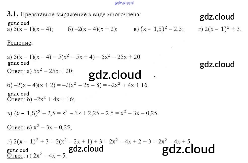 Ответ на задание 3.1 Учебник Алгебра за 8 (восьмой) класс Арефьева, Пирютко 2018 ФГОС онлайн и без номера телефона.