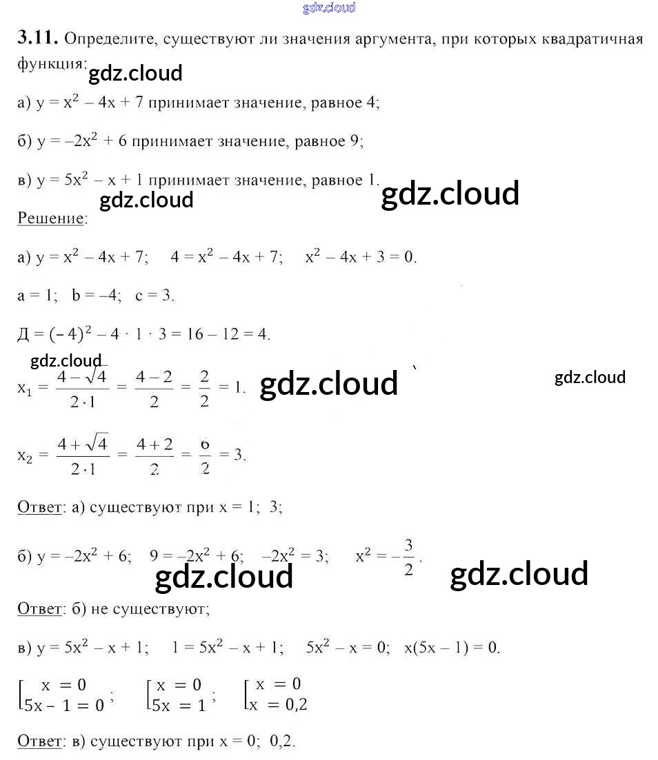 Ответ на задание 3.11 Учебник Алгебра за 8 (восьмой) класс Арефьева, Пирютко 2018 ФГОС онлайн и без номера телефона.