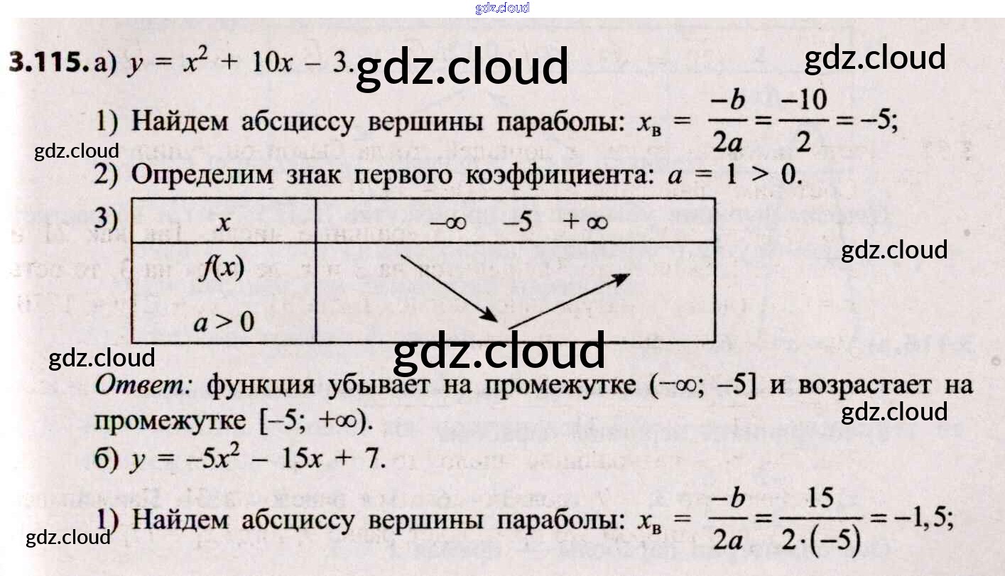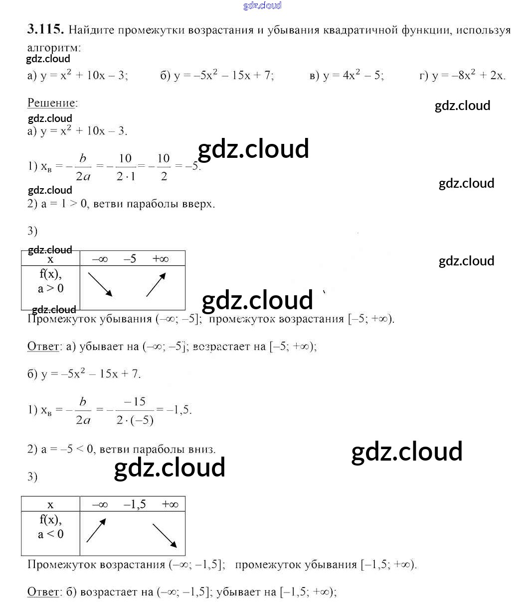 Ответ на задание 3.115 Учебник Алгебра за 8 (восьмой) класс Арефьева, Пирютко 2018