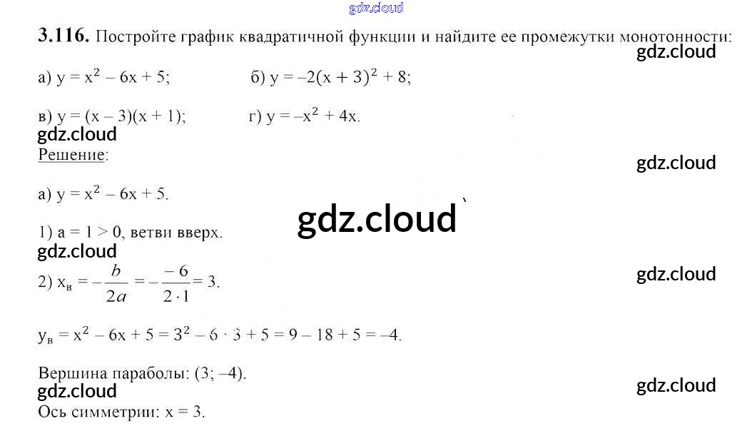 Ответ на задание 3.116 Учебник Алгебра за 8 (восьмой) класс Арефьева, Пирютко 2018