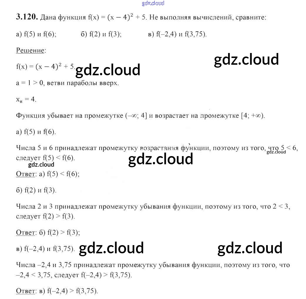 Ответ на задание 3.120 Учебник Алгебра за 8 (восьмой) класс Арефьева, Пирютко 2018