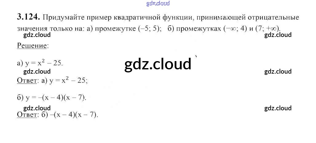 Ответ на задание 3.124 Учебник Алгебра за 8 (восьмой) класс Арефьева, Пирютко 2018