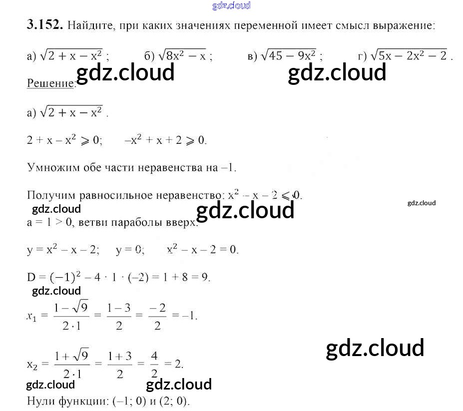 Ответ на задание 3.152 Учебник Алгебра за 8 (восьмой) класс Арефьева, Пирютко 2018 ФГОС онлайн и без номера телефона.