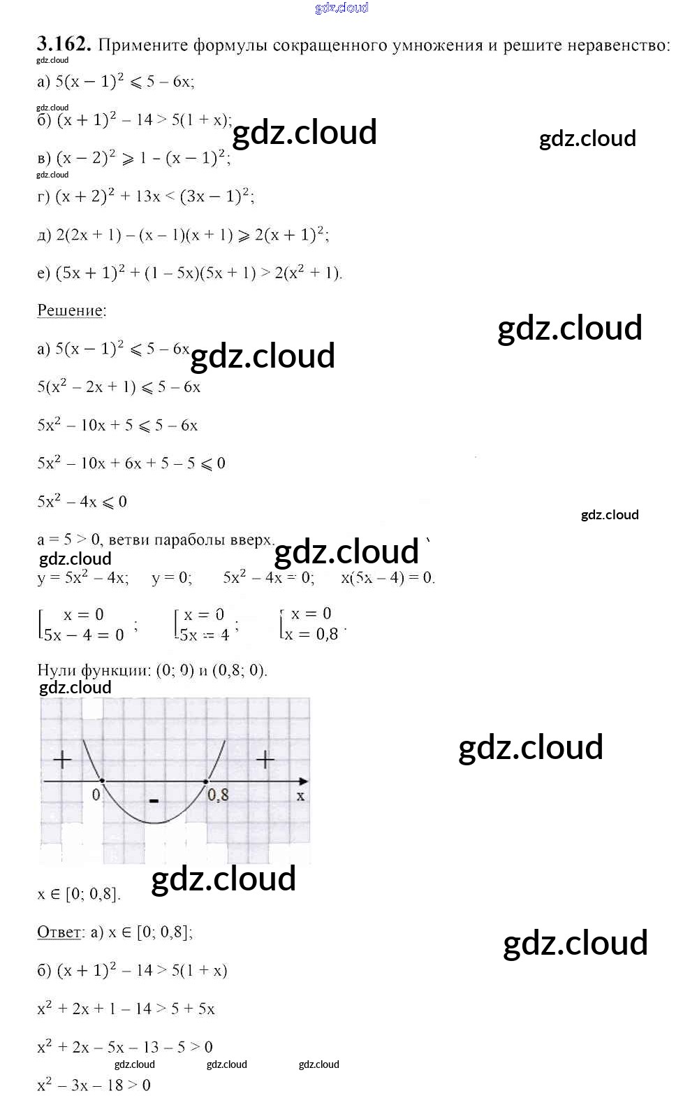 Ответ на задание 3.162 Учебник Алгебра за 8 (восьмой) класс Арефьева, Пирютко 2018 ФГОС онлайн и без номера телефона.