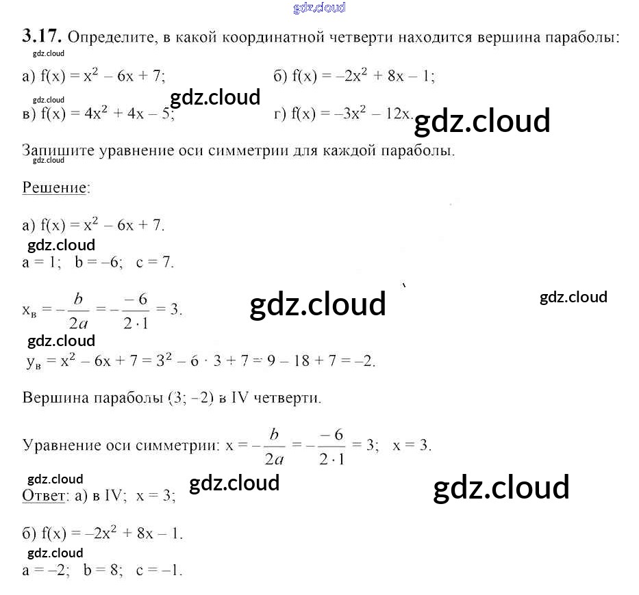Ответ на задание 3.17 Учебник Алгебра за 8 (восьмой) класс Арефьева, Пирютко 2018 ФГОС онлайн и без номера телефона.