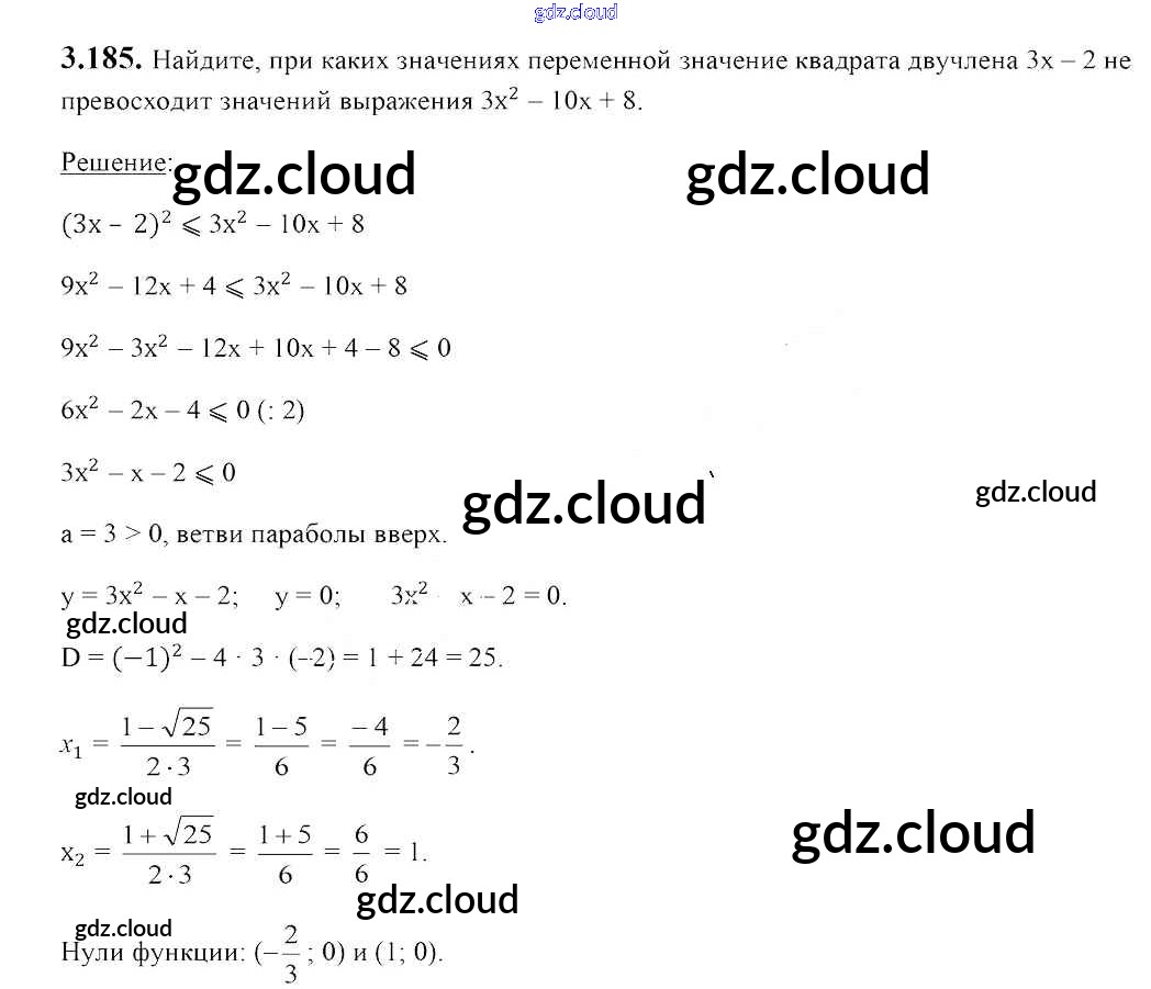 Ответ на задание 3.185 Учебник Алгебра за 8 (восьмой) класс Арефьева, Пирютко 2018