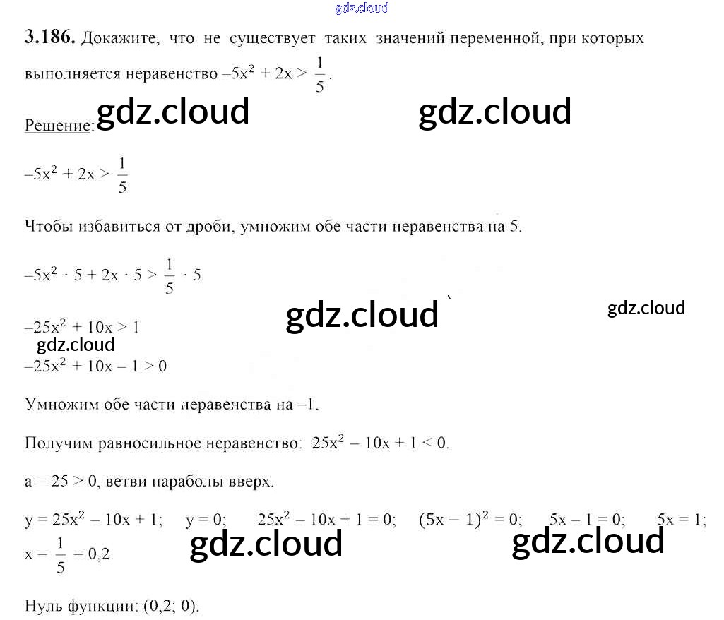 Ответ на задание 3.186 Учебник Алгебра за 8 (восьмой) класс Арефьева, Пирютко 2018