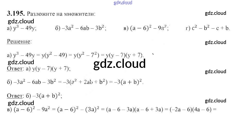 Ответ на задание 3.195 Учебник Алгебра за 8 (восьмой) класс Арефьева, Пирютко 2018