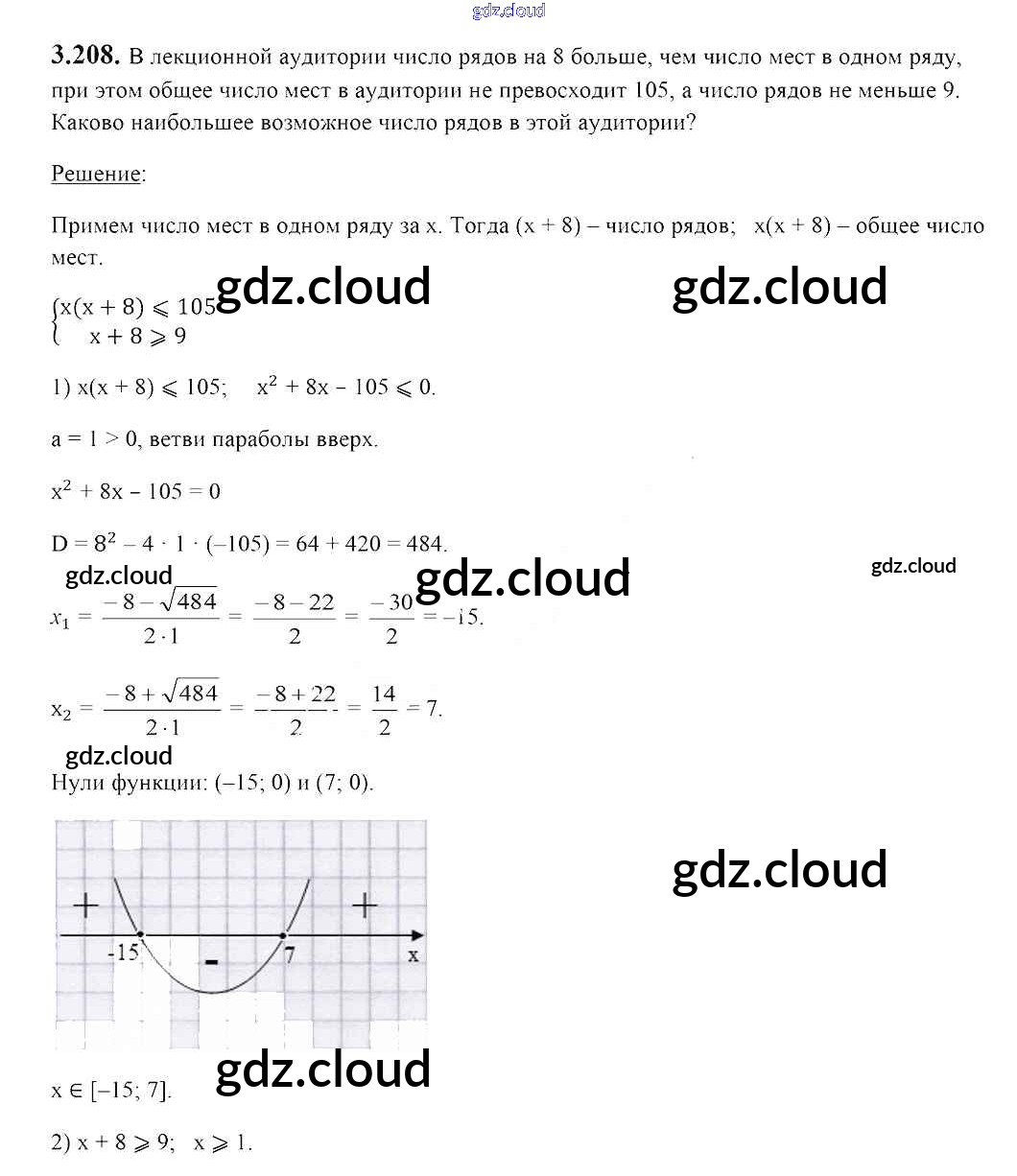 Ответ на задание 3.208 Учебник Алгебра за 8 (восьмой) класс Арефьева, Пирютко 2018 ФГОС онлайн и без номера телефона.