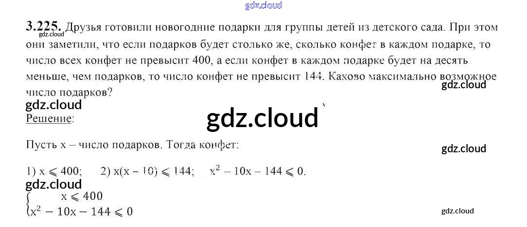 Ответ на задание 3.225 Учебник Алгебра за 8 (восьмой) класс Арефьева, Пирютко 2018