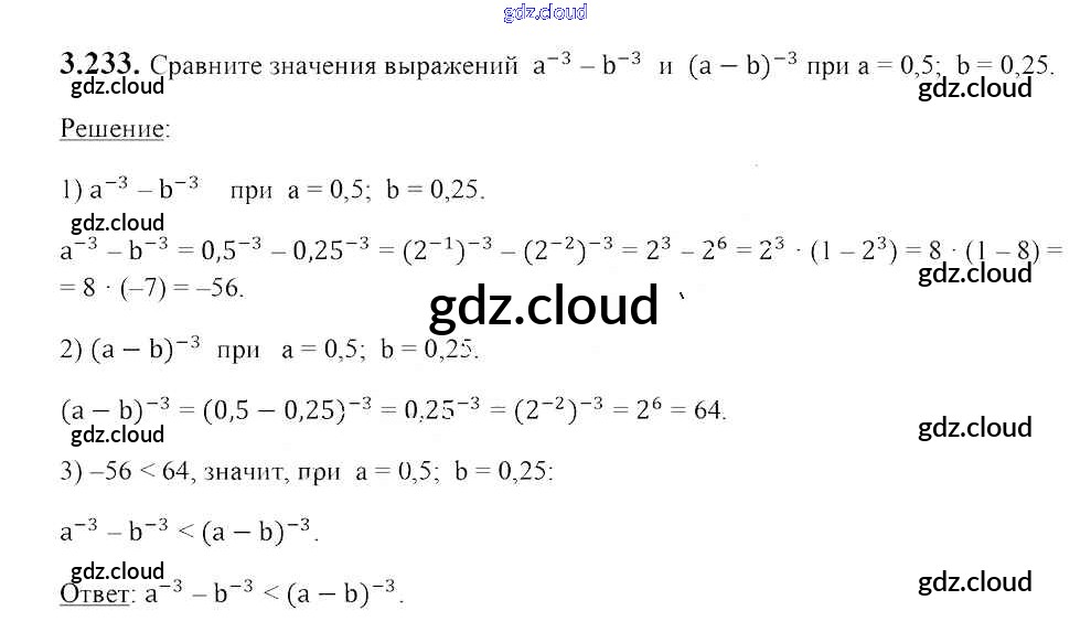 Ответ на задание 3.233 Учебник Алгебра за 8 (восьмой) класс Арефьева, Пирютко 2018
