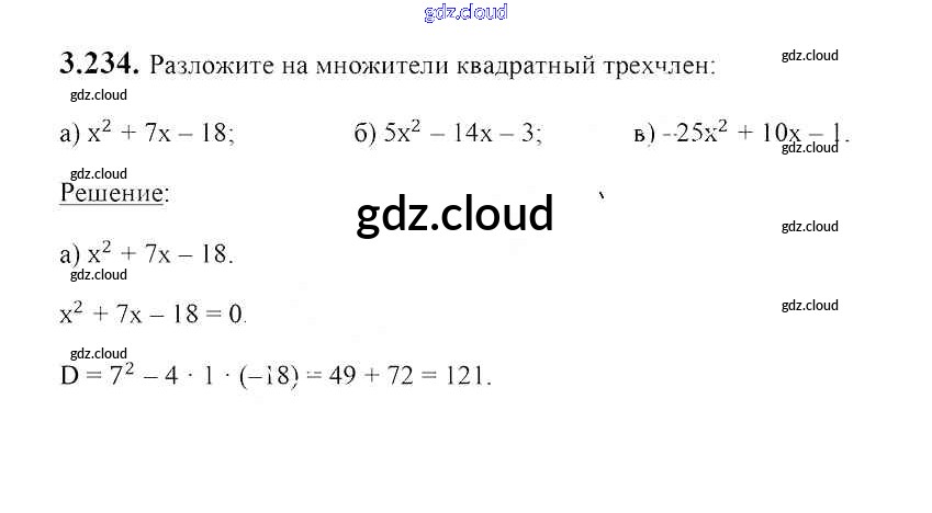 Ответ на задание 3.234 Учебник Алгебра за 8 (восьмой) класс Арефьева, Пирютко 2018