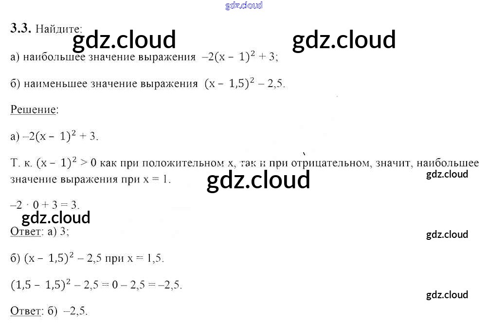Ответ на задание 3.3 Учебник Алгебра за 8 (восьмой) класс Арефьева, Пирютко 2018 ФГОС онлайн и без номера телефона.