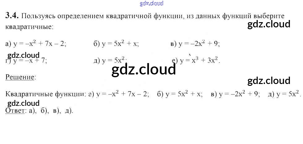 Ответ на задание 3.4 Учебник Алгебра за 8 (восьмой) класс Арефьева, Пирютко 2018 ФГОС онлайн и без номера телефона.