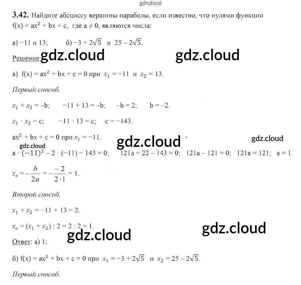 Ответ на задание 3.42 Учебник Алгебра за 8 (восьмой) класс Арефьева, Пирютко 2018 ФГОС онлайн и без номера телефона.