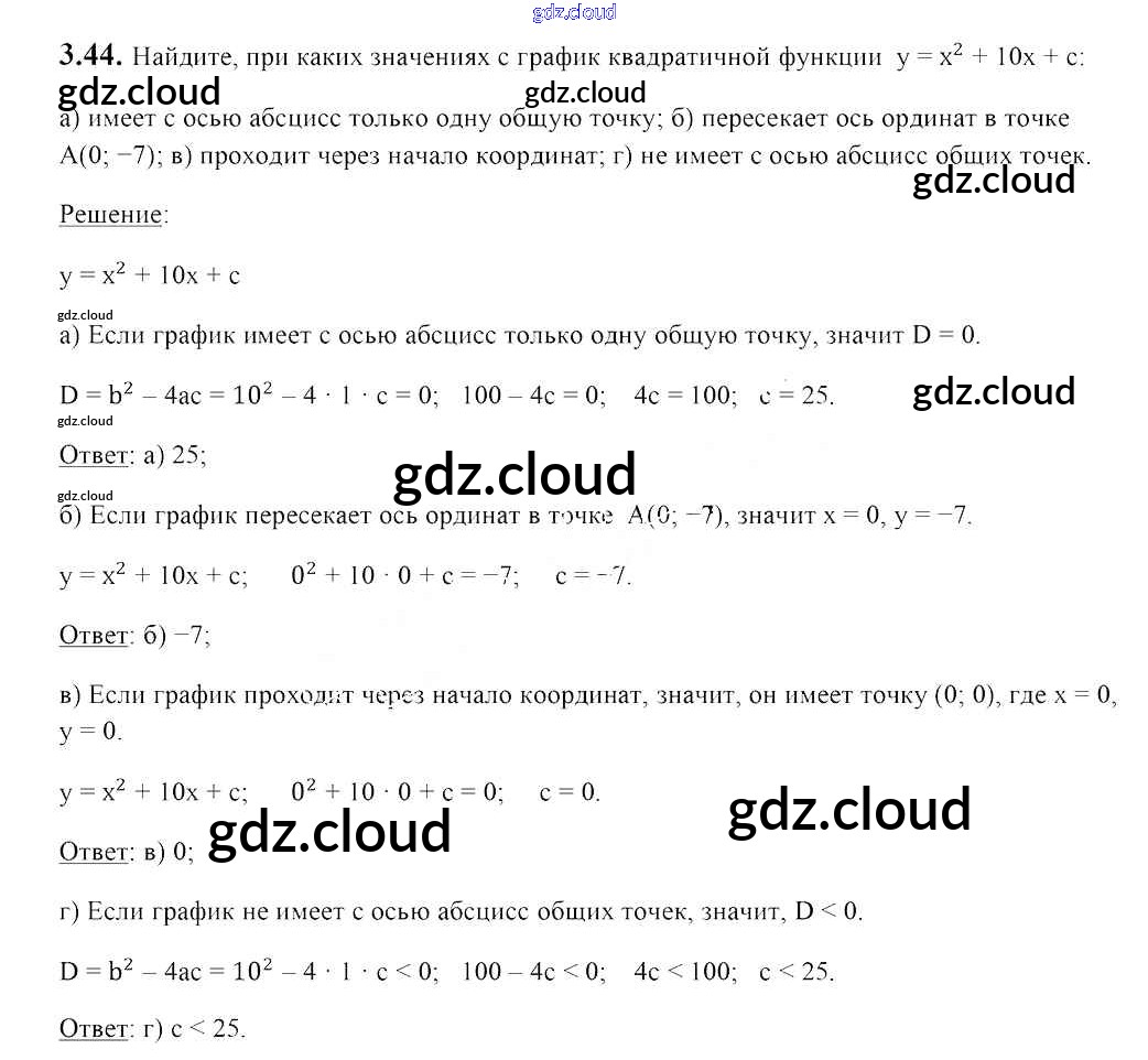 Ответ на задание 3.44 Учебник Алгебра за 8 (восьмой) класс Арефьева, Пирютко 2018 ФГОС онлайн и без номера телефона.