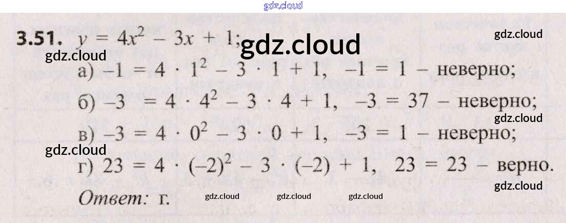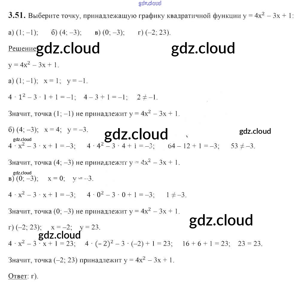 Ответ на задание 3.51 Учебник Алгебра за 8 (восьмой) класс Арефьева, Пирютко 2018