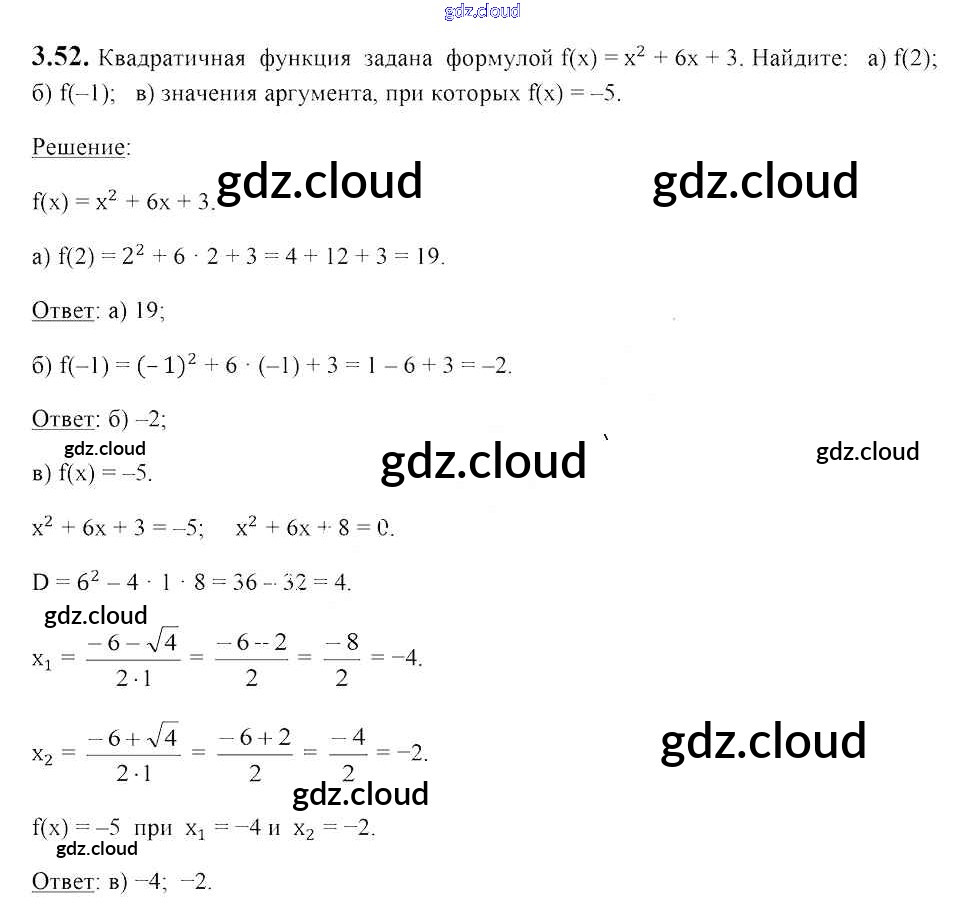 Ответ на задание 3.52 Учебник Алгебра за 8 (восьмой) класс Арефьева, Пирютко 2018