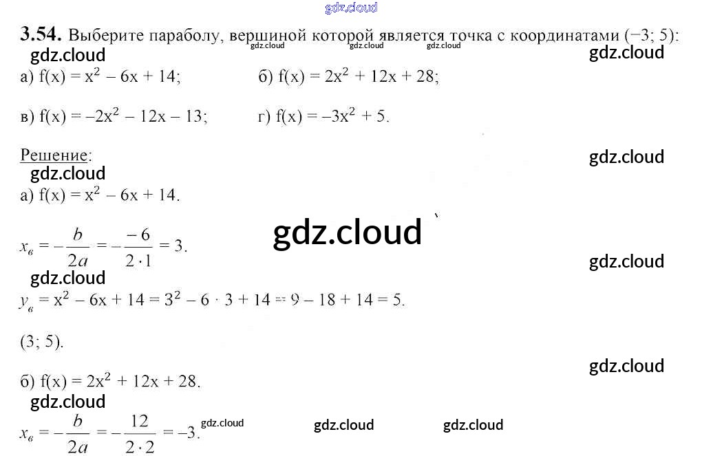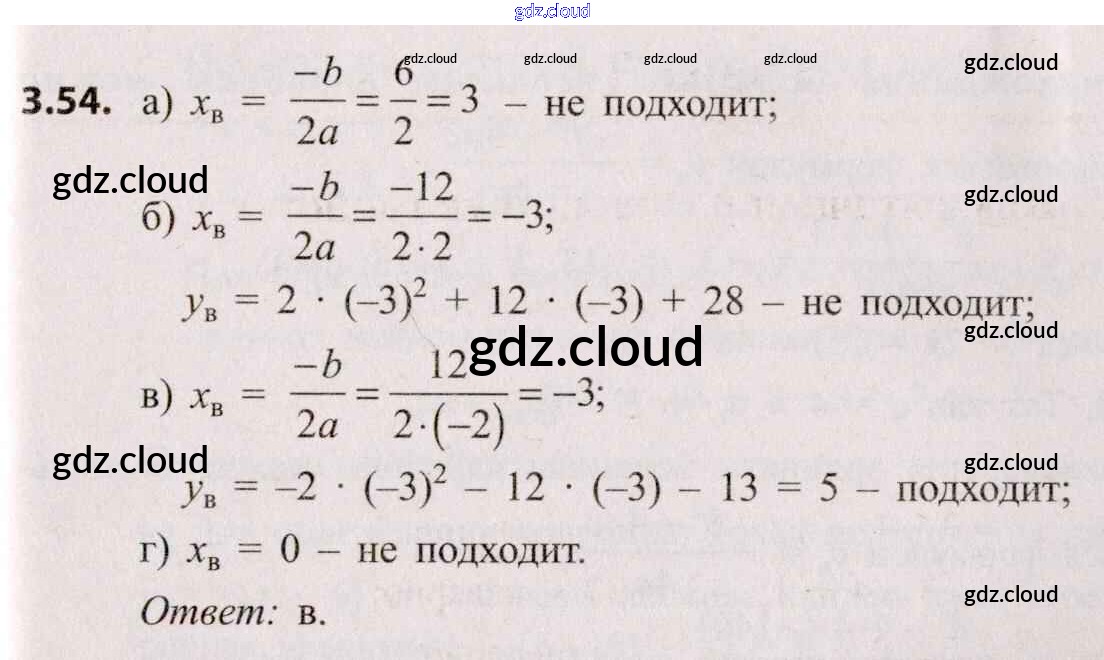 Ответ на задание 3.54 Учебник Алгебра за 8 (восьмой) класс Арефьева, Пирютко 2018