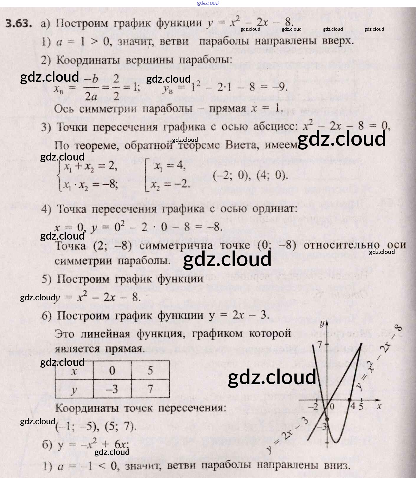 Ответ на задание 3.63 Учебник Алгебра за 8 (восьмой) класс Арефьева, Пирютко 2018