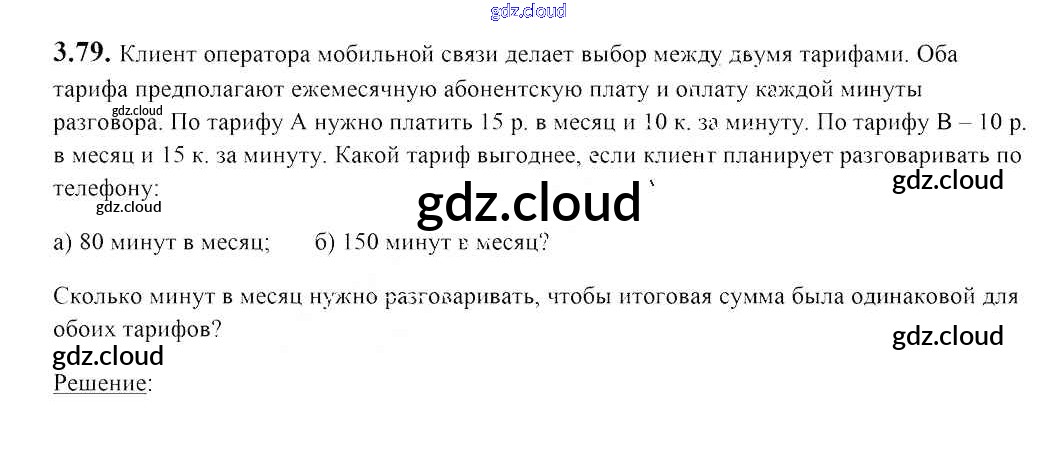 Ответ на задание 3.79 Учебник Алгебра за 8 (восьмой) класс Арефьева, Пирютко 2018