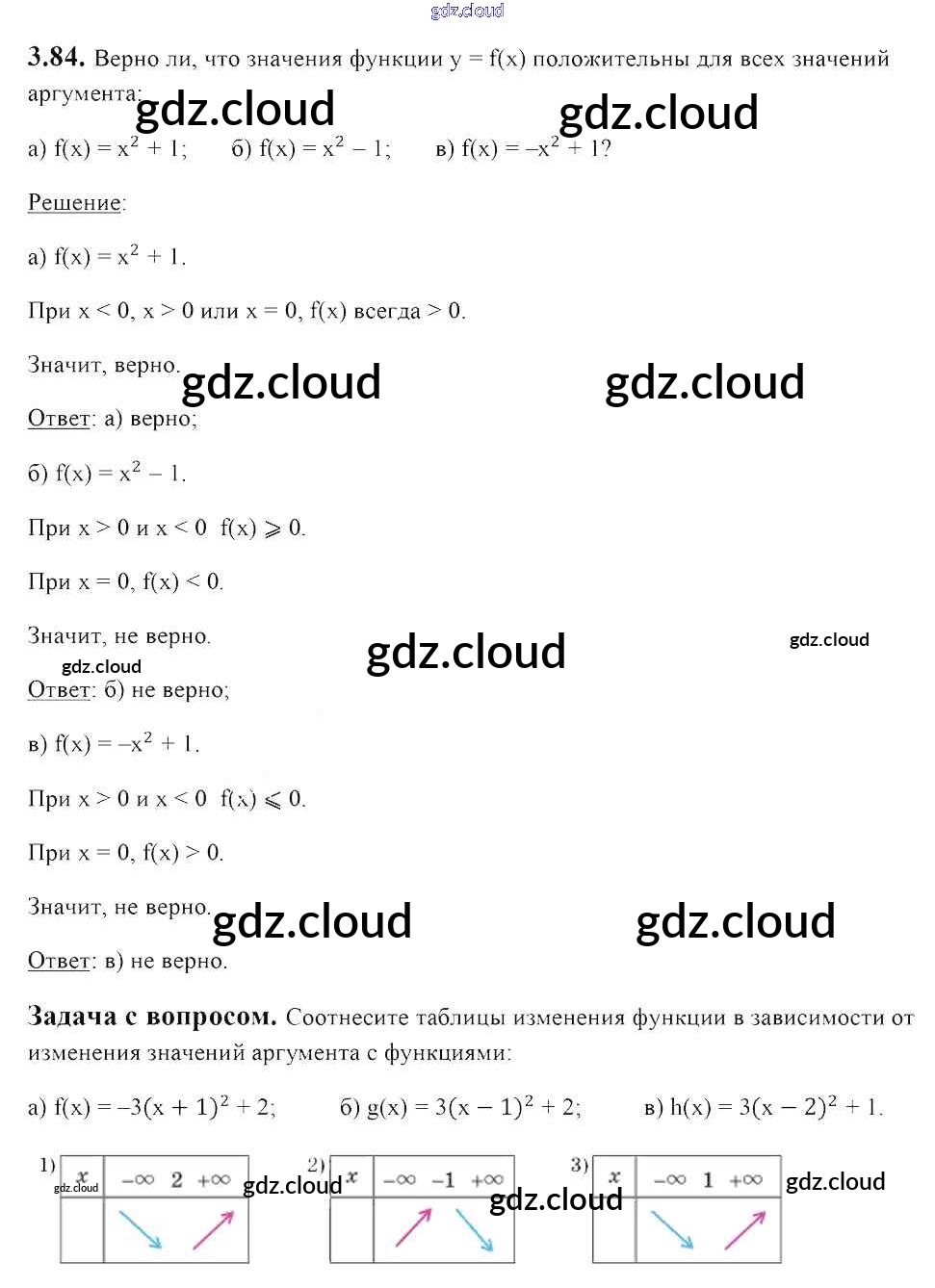 Ответ на задание 3.84 Учебник Алгебра за 8 (восьмой) класс Арефьева, Пирютко 2018 ФГОС онлайн и без номера телефона.